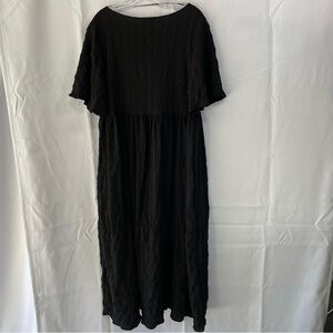 Nordstrom Women’s Black Texture Flowy short sleeve Maxi Dress Size Medium V-Neck Tiered