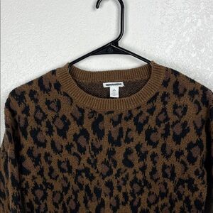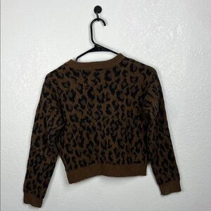 Nordstrom Women’s Brown and Black Leopard Cropped Sweater Crew Neck Sz M Mobwife