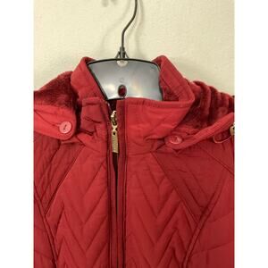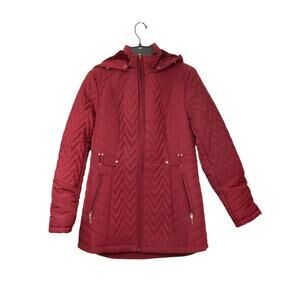 Nordstrom Women's Gallery Hooded Quilted Merlot Jacket Removable Fur Hood Sz S