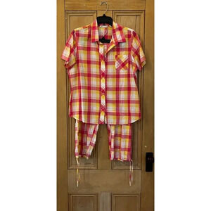 Nordstrom Womens Plaid Tie Capri 100% Cotton Pajama Set Size Large Pink SP EXC.