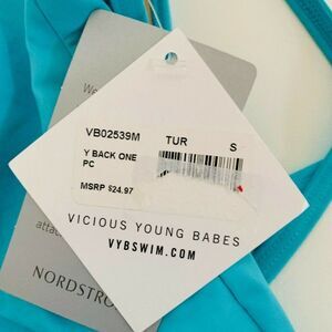 Nordstrom Womens Swim VYB Turquoise Blue Y Back One Piece Swimsuit Small New with tags