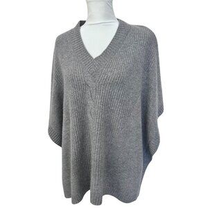 Nordstrom Wool Cashmere Knit Poncho Cape Sweater One Size Gray Soft V-Neck
