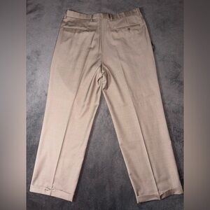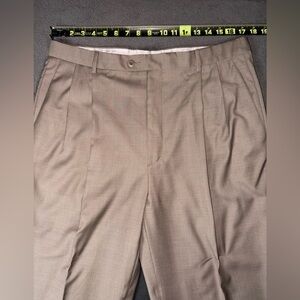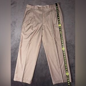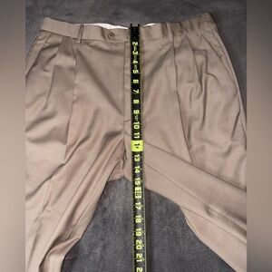 Size 36, inseam is tailored to 28 inches, and has a pleated front!
