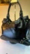Nordstrom Black leather shoulder bag with studded details. Magnetic closure detail with 3 sections. Section one has two open pockets, section two has one open and one zip pocket, pen slots, center zip section. Cleaned and conditioned.