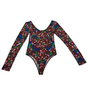 Nordstrom by Cristina Martinez Bodysuit Long Sleeve Scoop Neck Blossom Expression.