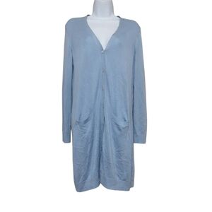 Nordstrom collection cardigan long silk cashmere blue wome M lagenlook luxury