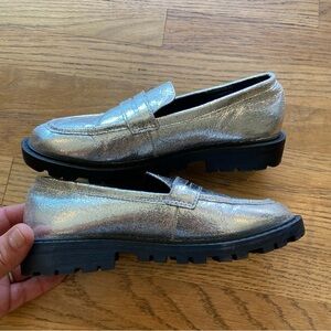 Nordstrom girls silver loafer EUC size 3