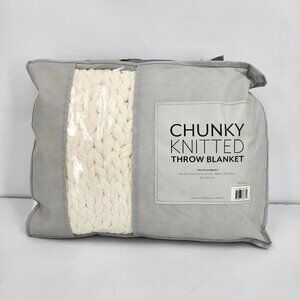 Nordstrom iEnjoy Chunky Knitted Throw Blanket Ivory 47x59 NEW $199