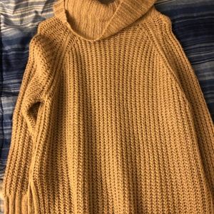 Warm Tan oversized long sleeve sweater with cow neck.