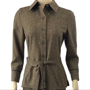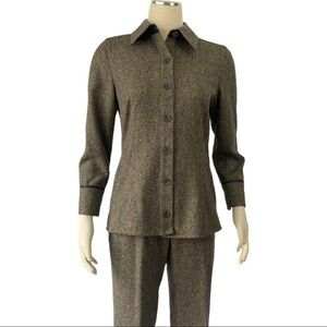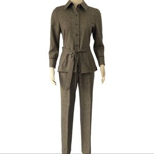 Nordstrom wool tweed pant suit with button front blazer and tie belt at waist. Great work career staple piece for your wardrobe. Blazer is a size XS ad pants are a Size 2. Please see pictures for more details.