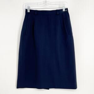 Vintage Nordstrom x Freedburg Collaboration Pure Wool Straight Skirt in Navy Blue