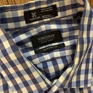 Nordstrom Blue and White checkered dress Shirt 17.5 / 34