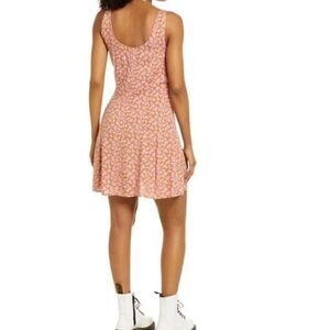 Nordstrom Bp Button Front Woven Tank Mini Dress Tan Pink Floral Small NWT