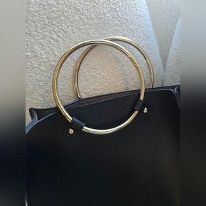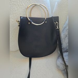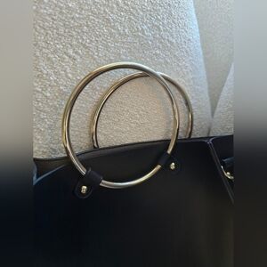 Nordstrom/Brass Plum, Faux Leather Satchel Crossbody Bag, Black/Silver