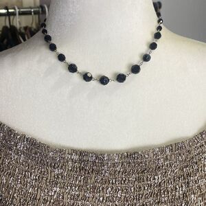 Nordstrom Graduated Black Glass Beaded Station Strand Necklace 16-18” New