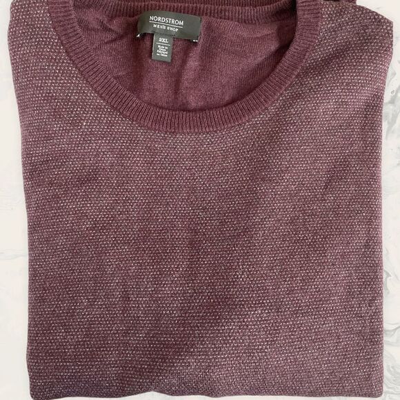 Nordstrom Men’s Bird's Eye Crewneck Sweater - Size 2XL - Burgundy Fudge Birdsey