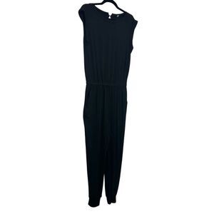 Nordstrom Rack Drawstring Cap Sleeve Keyhole Back Jogger Jumpsuit Black Medium