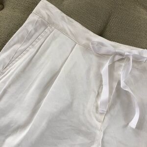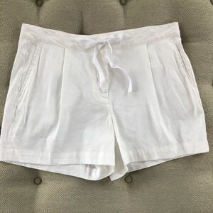 New without tags Nordstrom signature white linen blend shorts with tie waist and pleated front. Measures approximately 18” across the waist, 11.5” rise 4.5” inseam. laid-back, these are the shorts you'll reach for on the regular thanks to the lightweight linen blend with bit of stretch. Front slant pockets; back welt pockets 57% linen, 40% viscose, 3% elastane