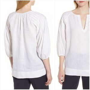 Delicate pintucks at the neckline and shoulders make a pretty start to a gently billowed top that's perfect for your sunny travels in cool, crisp linen. Tags have been removed for comfort and does not affect the wear of blouse.