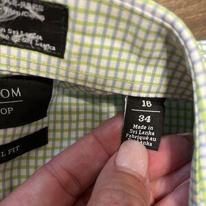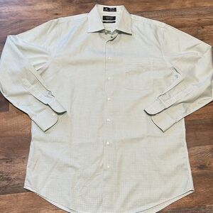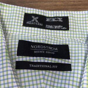 Nordstrom men’s shop traditional fit long sleeve button down wrinkle free 100% cotton blue green and white size 16/34 excellent used condition