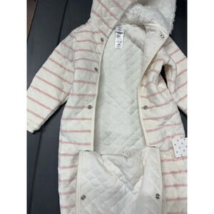 Nordstrom NWT Print Bunting in Ivory Egret- Pink Stripe 9 Months Baby Outerwear