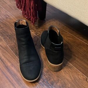 Nordstrom's Caslon Genuine Leather Ankle Boots w/Stacked Square Wood Heel Sz. 61/2. Great with jeans or a skirt. Good preowned condition. With a quality show like this, there is still a lot of life left. An excellent addition to any closet.