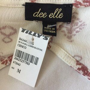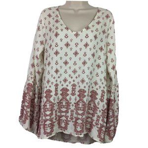 Nordstroms Dee Elle Rayon NEW Bell Sleeve Flowy Long Blouse in Cream and Pink With Open Back - Boho Light Weight longer on back