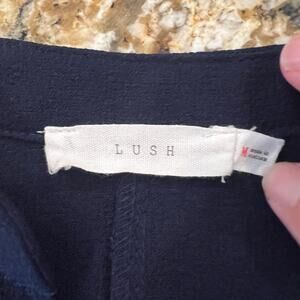 SIZE MEDIUM - This Nordstroms Lush Navy Novak Split Neck Three-Quarter Sleeve Dress is perfect for the office or a night on the town. three-quarter sleeves with roll-tab cuffs , Split neck,Three-quarter sleeves with roll-tab cuffs, On-seam pockets, Unlined, 97% polyester, 3% spandex, Dry clean. COLOR is navy. APPROXIMATE MEASUREMENTS- Chest across is about 18 3/4" and length is about 35".
