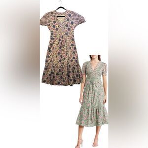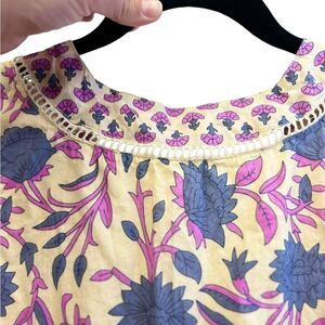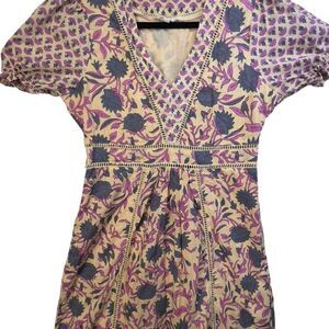 Maisie Midi Floral Pink dress size small in great condition - outlined with crochet trim and puff sleeves with pretty floral print in pink and yellow
