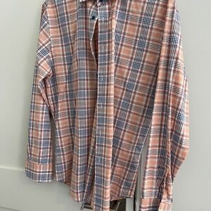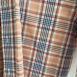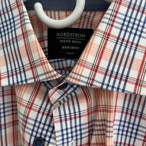 Nordstrom's Men's Shop- Non-Iron- Trim Fit Dress/Casual Shirt- Size 16. It has been dry cleaned and is in mint condition. It is orange/blue/white & red. It is just awesome.