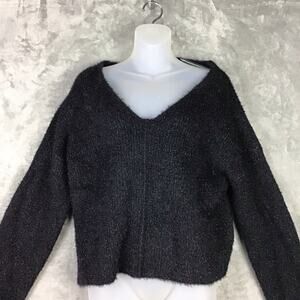 Nordstroms NWT Abound Cropped Black Sparkle V-Neck Cropped Sweater Pullover LRG