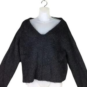 Nordstroms NWT Abound Cropped Black Sparkle V-Neck Cropped Sweater Pullover LRG