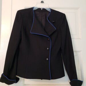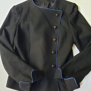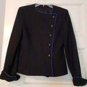 Norgail Vintage Wool Asymmetrical Collarless Black Blazer Jacket Size S.