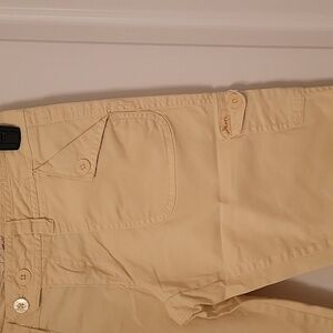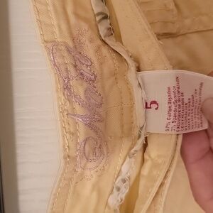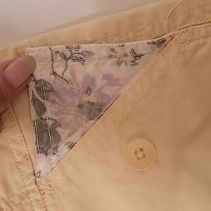 Nori Pale Yellow Bermuda / Cargo Shorts, Size 5. Gently used. Great condition. Cute purple flowers on inside of pockets. 5 Pocket: 2 front, 2 rear and 1 side. * Color is accurate in last photos (Sorry about my lighting, I'm working on it)