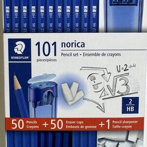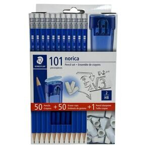Norica 50 Pre sharpened #2 HB Pencils with 50 Eraser Caps and Sharpener School