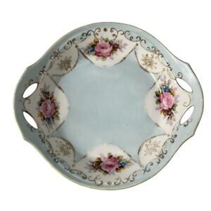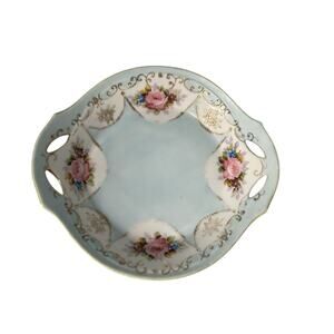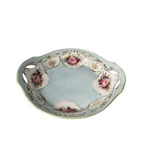 Noritake 19th Century Bowl Candy Dish Hand Painted Blue Pink Flowers Floral Gold