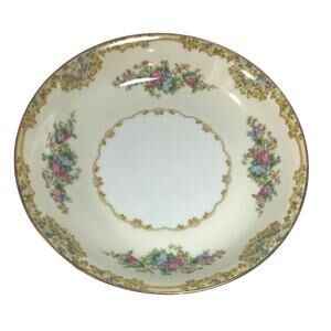 This vintage Noritake Alvin coupe soup bowl showcases an elegant floral design with a gilded rim. Crafted from fine porcelain, it radiates timeless charm and sophistication, making it a lovely addition to your collection. The intricate floral motifs highlight the exquisite craftsmanship of the era.