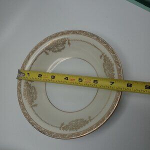 This elegant Noritake Bancroft bowl features a delicate floral basket design with a gold trim, adding a touch of sophistication to any table setting.