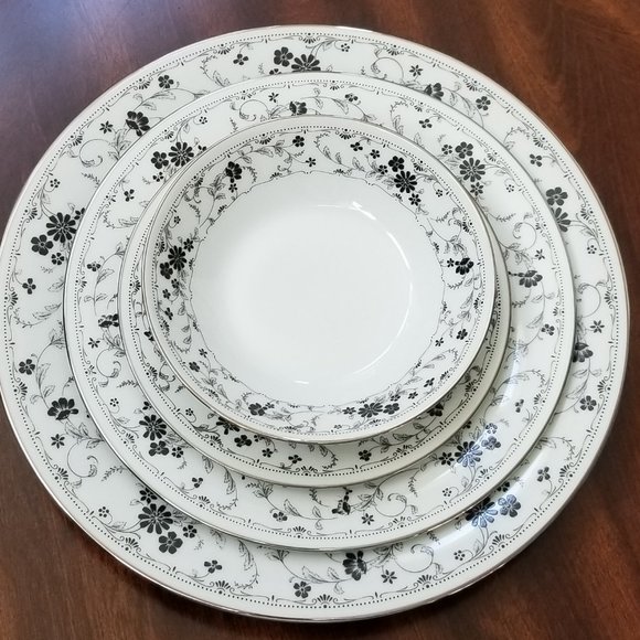 Noritake Black Lace Fine China 4 pc Setting Excellent Condition