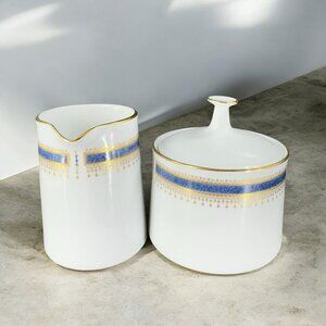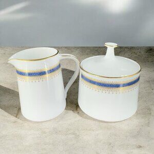 Noritake Blue Dawn Creamer And Sugar Set Gold Rim Blue Accents Vintage Japan VTG