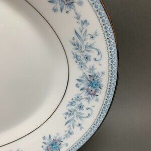 Noritake Blue Hill 2482 Oval Platter Plate Tray Blue White Floral Platinum Trim