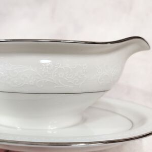 Noritake Buckingham Platinum Gravy Boat w/ Attached Underplate