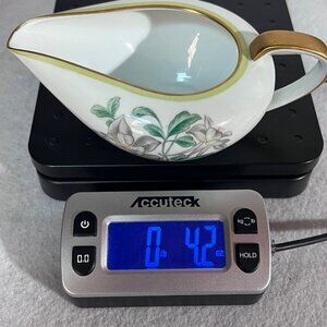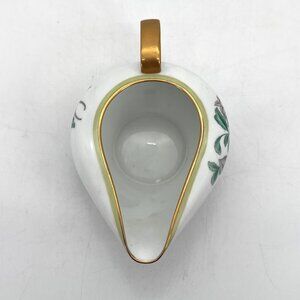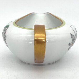 This Noritake China gravy boat features a delicate floral design with a sophisticated gold trim, offering an elegant touch to any dining setting. Crafted in Japan, the porcelain piece exudes quality and timeless appeal, suitable for enhancing your tableware collection with a touch of class and heritage.