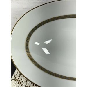 Noritake China OVAL Serving Bowl Grey Gold Greek Key Hartford 5944