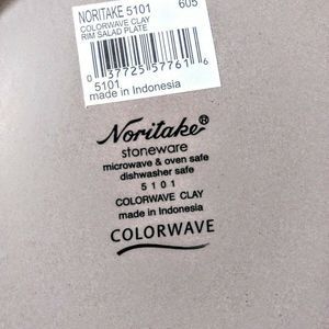 Noritake Colorwave Rim 4 Piece Place Setting In Clay. Give Your Dinner Table A Splash Of Stylish Color With The Nortake Color Wave Clay 4 Piece Place Setting Features Matte Textured Deep Coloration On The Outside In Glossy Creamed Colored Glaze On The Inside Microwave and Dishwasher Safe.