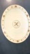 This is an oval meat platter made by Noritake in Japan.  The pattern is Normandy.  The background is a butter yellow color with a floral design and gold trim at the edge.  The platter measures 13 3/4" across and 11" across the other way.