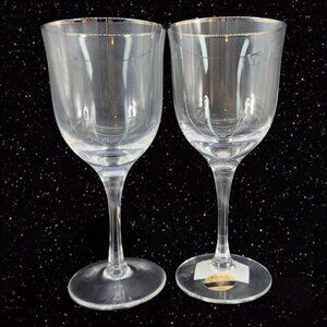 Noritake Crystal Paris Platinum Trim Wine Goblet Drinking Glass Set 2 Korea NEW.