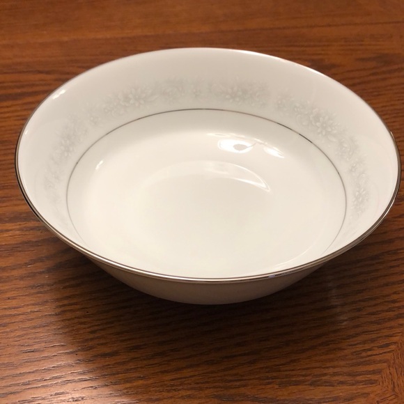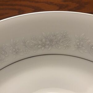 9 inch round x 3 inches tall round Noritake Cumberland serving bowl with silver rim - 2225