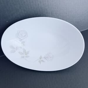 Noritake Edenrose 10" Oval Vegetable Bowl Gray/Pink/White Roses VTG