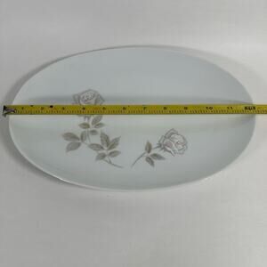 Noritake Edenrose 12.25" Oval Serving Platter Gray/Pink/White Roses VTG